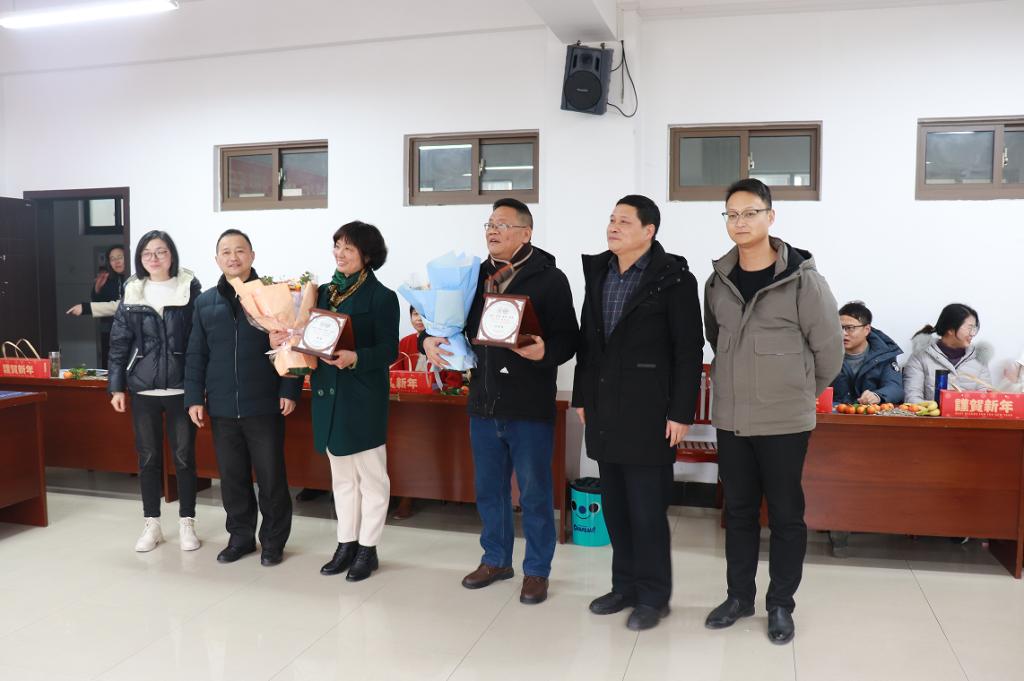 院长汪和平向大家介绍了两位荣休教师的基本情况,并代表学院向他们表达了深情的感谢和真挚的祝福,书记汪春胜代表学院颁发了荣休纪念牌。教师代表陈梦凯、刘林分别向方承武和陈荣献花。