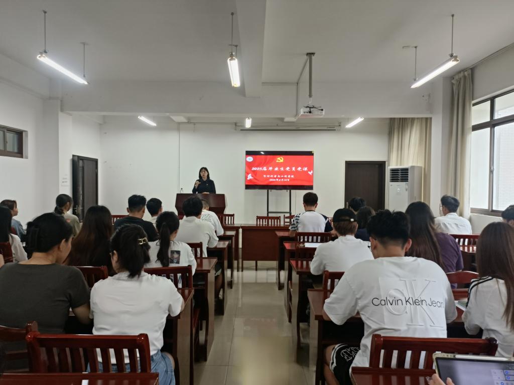 在汇文楼A308开展“廉洁新生代,青春新担当”2025届毕业班党员最后一次党课。本次党课由学院党委副书记、纪委书记、副院长赵颖主讲,全体毕业班辅导员和2025届本科生、研究生毕业生党员参加了此次活动。
