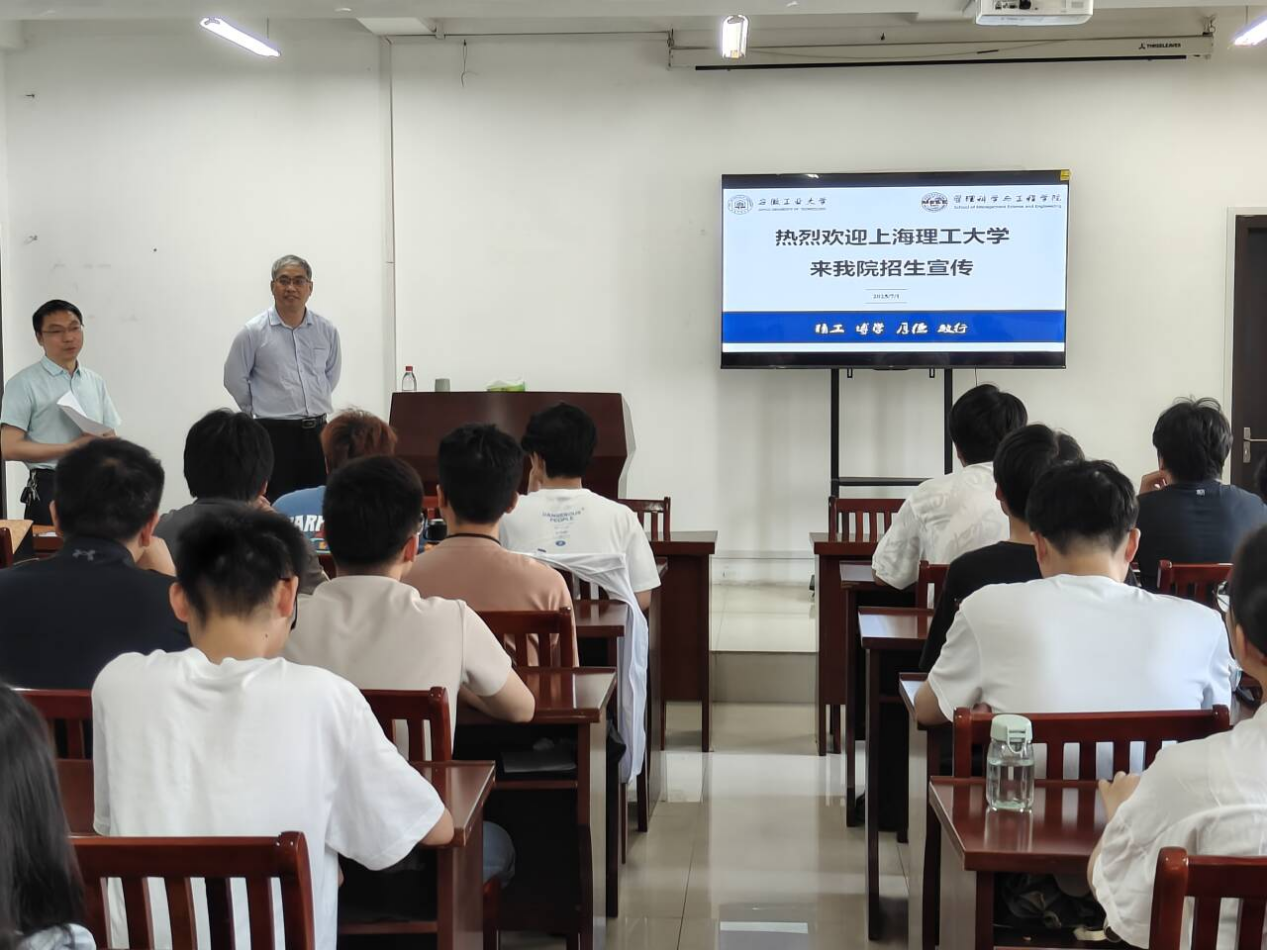 在汇文楼A308会议室召开上海理工大学研究生报考专场宣讲会。上海理工大学二级教授、博士生导师叶春明作招生宣讲,活动由学院副院长(主持工作)王付宇主持。