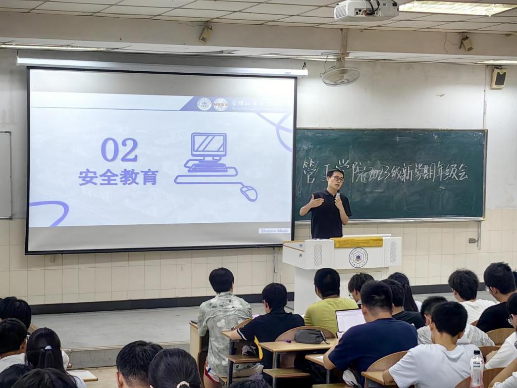 会上,曹宇就近期高发的电信诈骗案件开展专项警示教育,结合“游戏代打”“刷单返利”等典型实例,提醒同学们务必提高网络安全防范意识,做到“不轻信、不转账、不泄露”。同时,曹宇强调宿舍安全纪律,明确禁止使用违规电器。通过对上一学期各专业学科成绩的系统分析,曹宇鼓励同学们要认真总结、脚踏实地、严守课堂纪律。钱丹丹基于上一届毕业生在考研、就业等方面的实际数据,建议同学们要尽早明确个人目标,科学规划大学生活,强调提前准备和持续努力的重要性。