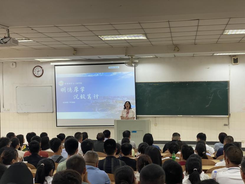 赵颖就学生教育管理情况介绍。她从学工队伍、安全教育、防范电信网络诈骗、在校毕业生的学业要求及近三年的育人成果等方面介绍了学院针对不同阶段建立的全方位支持体系。她寄语新生要树立各个阶段的目标,希望各位新生能够追逐梦想、勇毅前行。