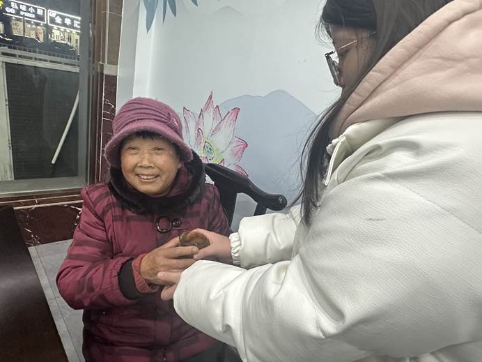 图为实践队员为老人递上热茶。 通讯员姚敏敏 摄