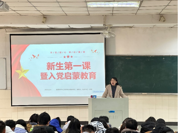 为增强2023级同学对党的认识,端正入党动机,坚定入党信念,引领新生扣好入党“第一粒扣子”,管工学院于12月4日在阶教101开展2023级入党启蒙教育。本次培训由院党委副书记、副院长、纪委书记赵颖授课,2023级辅导员及全体新生参加培训。