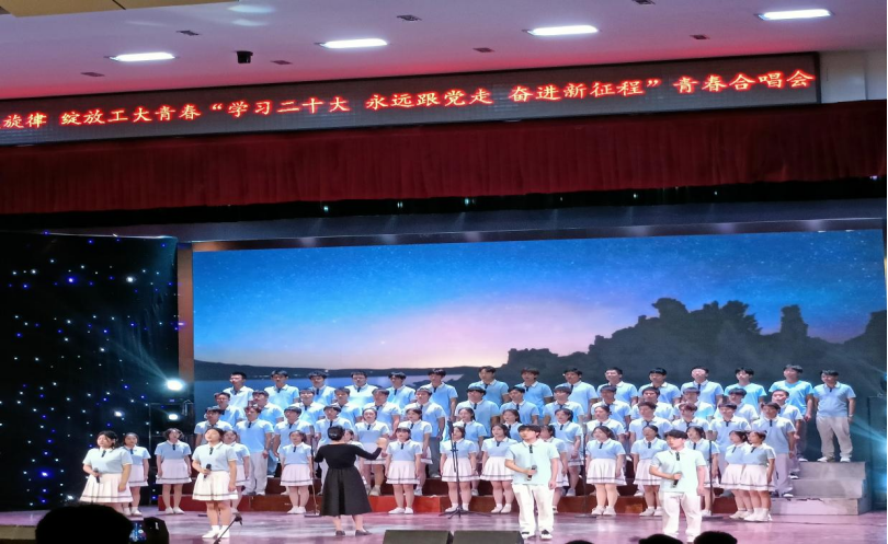 4月22日晚,h漫 “学习二十大永远跟党走奋进新征程”大学生合唱比赛在秀山校区大学生活动中心举行,共有十四支学院代表队参加比赛。