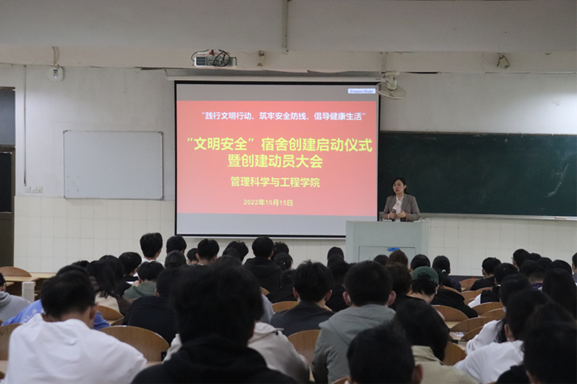 文明安全宿舍创建工作方案》要求,管工学院于10月15日下午在阶教101召开了文明安全宿舍创建动员大会。院副处级辅导员赵颖、院团委书记万媛媛、各年级辅导员以及各班级学生干部、寝室长、学生代表参会。
