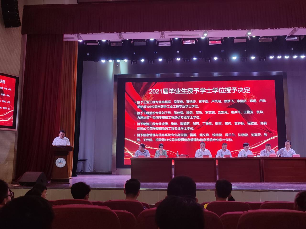 6月20日下午,管工学院2021届毕业典礼暨“青春拂晓,圆梦今朝”文艺汇演在秀山校区新大学生活动中心隆重举行。校党委副书记祖明、院党委书记汪春胜、院长汪和平及各系主任出席了典礼。任课教师代表、班主任代表、全体辅导员、学院2021届全体毕业生、在校生代表以及部分2020届毕业生代表参加了典礼。本次典礼由院党委副书记王功成主持。