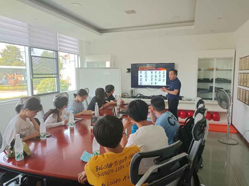 暑假社会调查广德团队来到了位于安徽省广德市的磐石油压工业有限公司进行实践学习。过程中,通过相关工作人员对该公司的介绍讲解,实践队员们对其发展历程有了一定的认识,后以提问咨询、深入生产车间参观生产流程等方式,进一步了解到公司现今工作布局和重点,以及未来近几年的发展规划。此外,实践队员还结合着专业所学知识,以乡村振兴为落脚点,在观摩交谈中学习与企业探讨发展经验总结与工艺提效,多角度探索可引领乡村振兴的高发展之路。