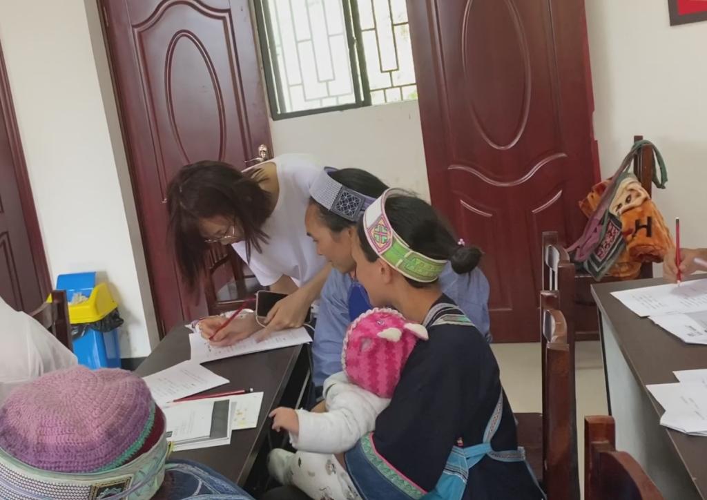 实践队员们为前来学习的村民们准备了铅笔、本子与教学课件等,耐心等待着村民们前来。身穿苗族传统服饰,背着娃娃的妇女,正计划去外地务工的苗族小伙,从未上过学只会讲苗语的大妈…..大家齐聚一堂,认真听着志愿者们的讲课。村民罗大哥向志愿者介绍,他家里有3个儿子1个女儿,现在都在广东打工,只有过年的时候才会回来。介绍过程中,40多岁的罗大哥表示自己只上过小学,上学时候老师主要用苗语上课,现在才开始学普通话,自己也很想学习普通话。