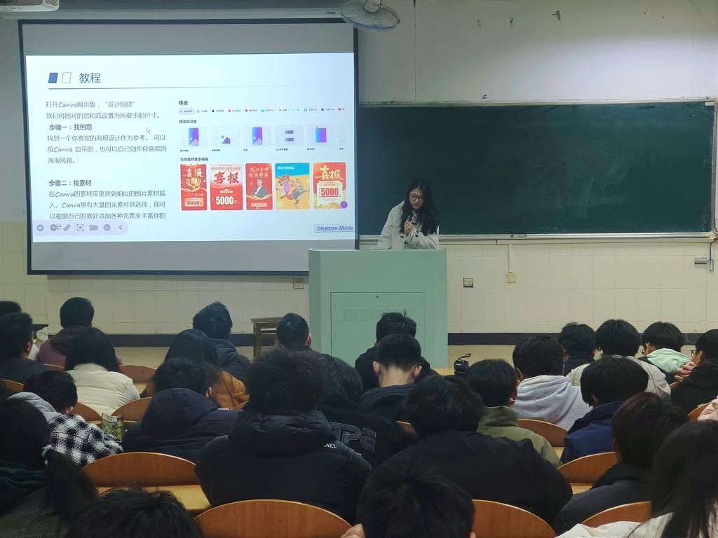 在阶教201组织开展基础业务能力培训会。会议由院青年媒体中心主讲,团委学生会各部门200余人参加。
