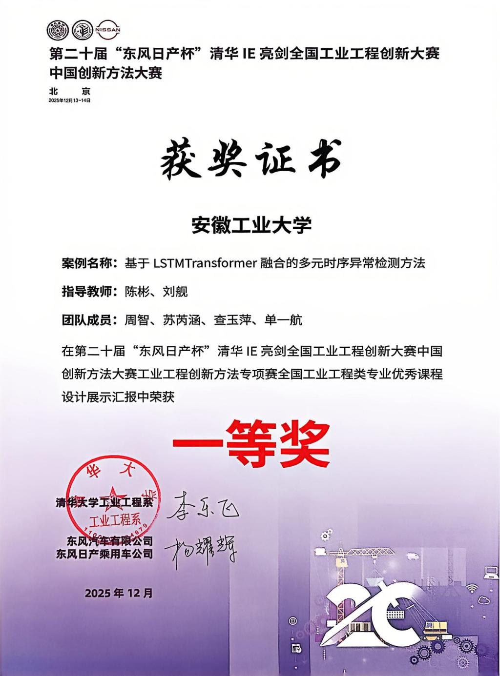 第二十届“东风日产杯”清华IE亮剑全国工业工程创新大赛在清华大学举行,面向全国工业工程相关专业高校,旨在推动工业工程创新方法在工程实践中的应用与发展。本次专项赛汇集了全国40余所高校104支队伍、452名学子踊跃参与,经过激烈角逐,共4支队伍获特等奖,12支队伍获一等奖。h漫