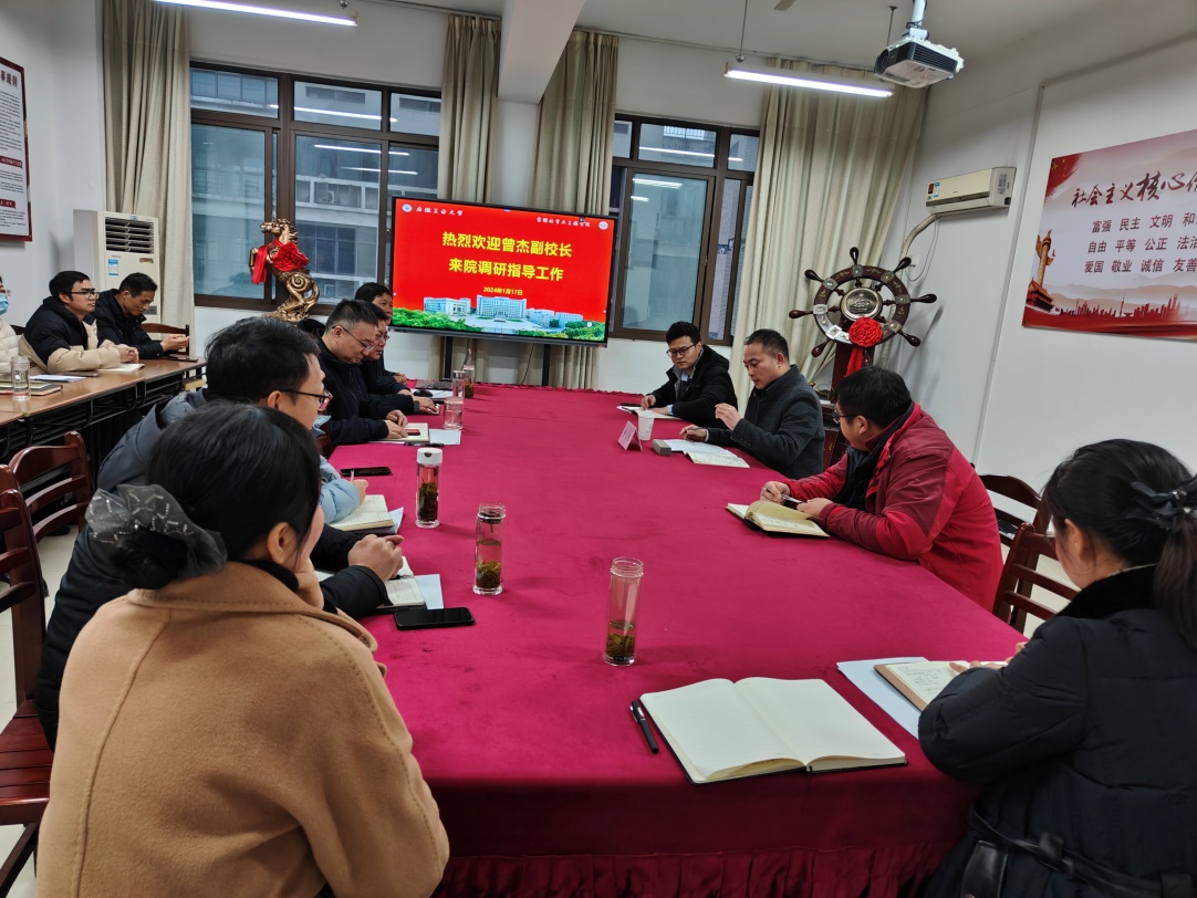 近年来建设发展情况特别是在教材建设和师生参加国家A类赛事取得的成效表示充分肯定。他指出,要注重内部治理。学院要自主培养学科带头人,积极整合现有资源,统筹谋划,做实做细,落实到人,营造良好的生态氛围;要注重激发年轻人潜力。青年人才是学科可持续发展的重要保障,不仅要引进来,还要送出去,为培养后备人才创造条件;要注重培养高质量研究生。在研究生教育规模不断扩大的新形势下,研究生培养质量直接影响科教兴国和人才强国战略的实施效果,研究生培养的工作重心将在提升研究生生源质量、规范管理、导师队伍、创新能力等方面下功夫。