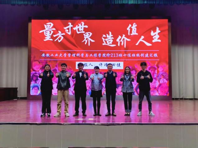 价213班36名同学齐心协力,曾获校五四红旗团支部、校“一支部一特色”团支部全校第一等集体荣誉,创造了多个专业第一。答辩会上,班级田健同学与许瑾同学,以“量方寸世界,造价值人生”为汇报主题,围绕“班级氛围”“思想引领”“学风建设”等10个主题展开汇报。突出“精计量,巧量方寸空间;巧计价,构建价值人生”的班级特色,展现了“团结奋进、自强不息”的良好班风。