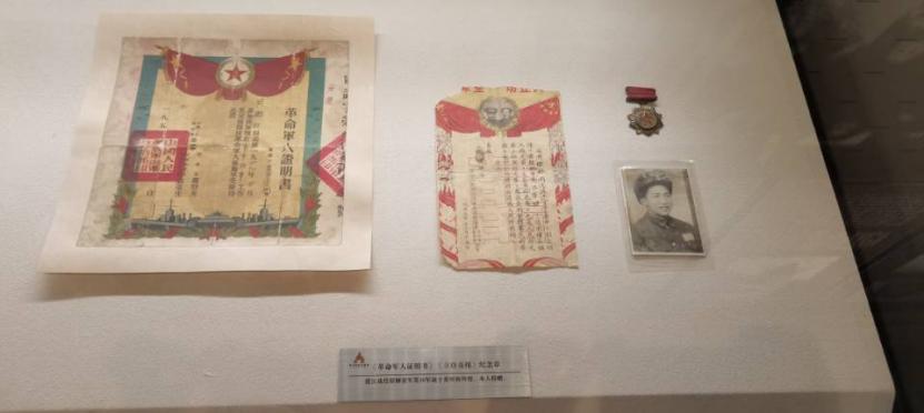 图为渡江战役英雄的《革命军人证明》和立功纪念章。