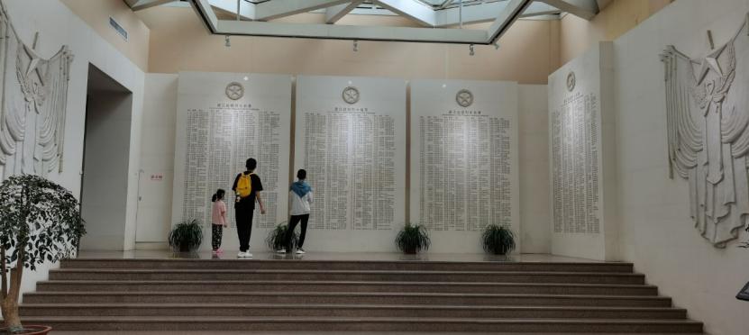 图为实践队员在瞻仰渡江战役纪念馆内的烈士名录。