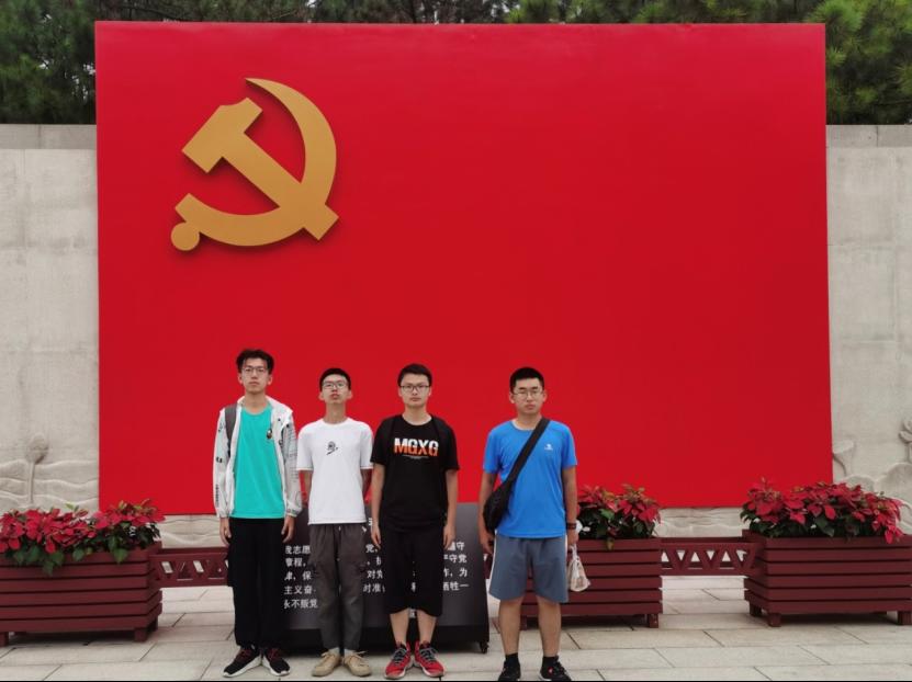 图为实践团队在南湖革命纪念馆党旗下的纪念合影。