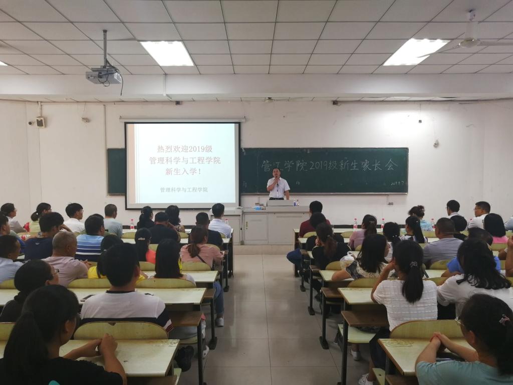 于本部教三南103召开新生家长会。学院党委书记汪春胜、教师代表、新生班主任代表、辅导员、新生家长等300余人参加了本次会议,会议由院团委书记周爱军主持。