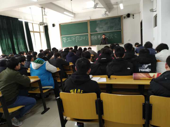 2月25日中午,h漫 在教D101召开2017级补考动员大会,本年级参加补考的近百名学生参加,17级辅导员邢维迢主讲。