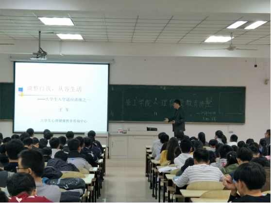 10月23日下午,h漫 在本部教三南103举办以“调整自我,从容生活”为主题的大学生入学适应教育讲座。校学工部副部长、大学生心理健康教育咨询中心主任王军主讲,h漫 全体新生到场参加。