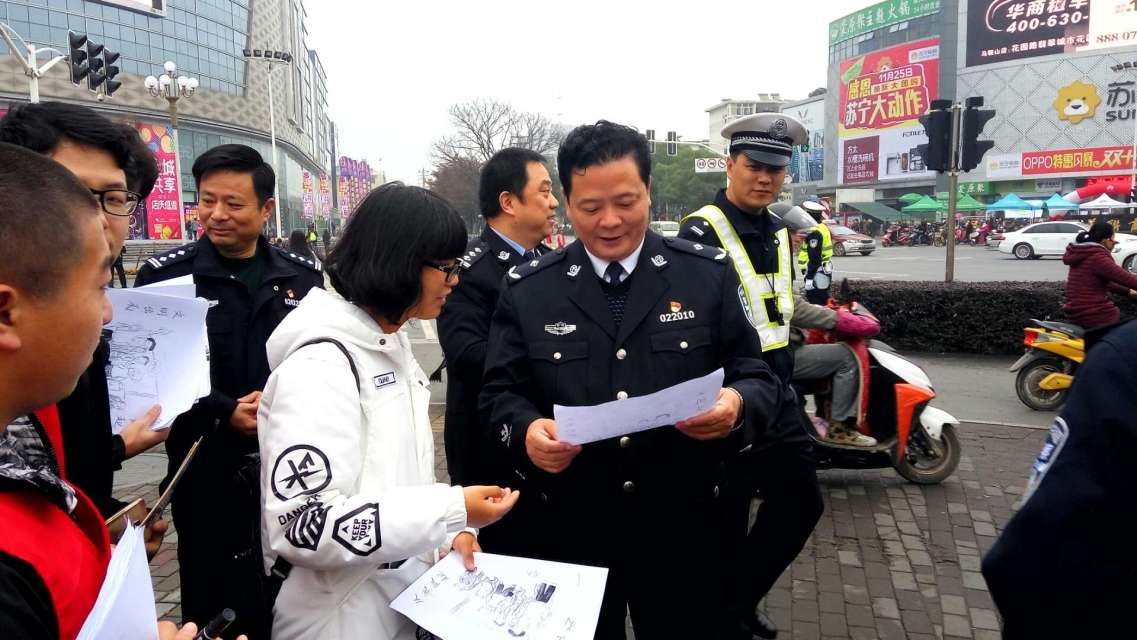 “你们是学艺术的同学们吗?手绘稿画得很好,志愿者们的活动很有意义。希望以后能有更多的机会和安工大的志愿者们合作。”交警支队交警笑着称赞说。
